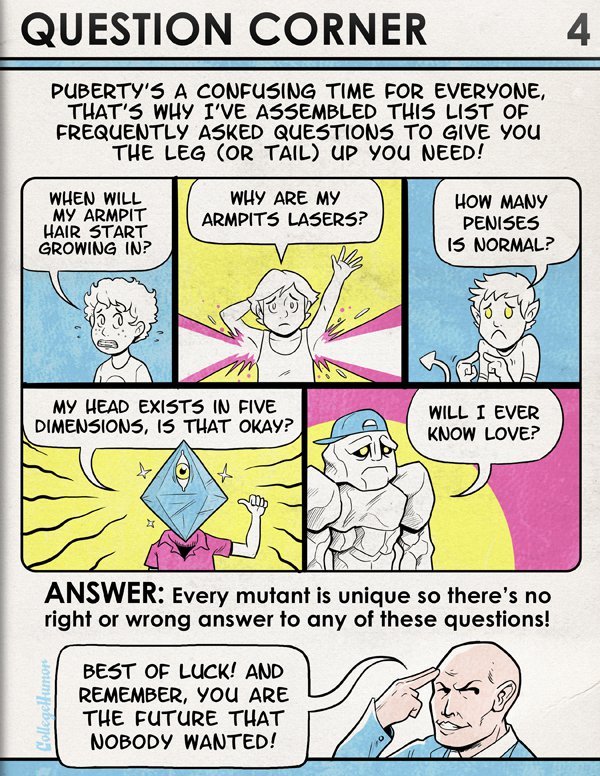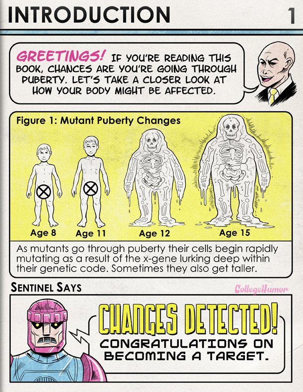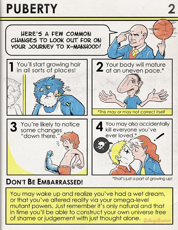 collegehumor: The X-Men Guide to Puberty by blogwell If you liked this you may also like: The 7 X-Men You’ll Meet at Every Party If U.S. Politicians Were The X-Men X-Men Sex Moves Share this: Click to share on X (Opens in new window) X Click to share on Facebook (Opens in new window) Facebook Like Loading... Related