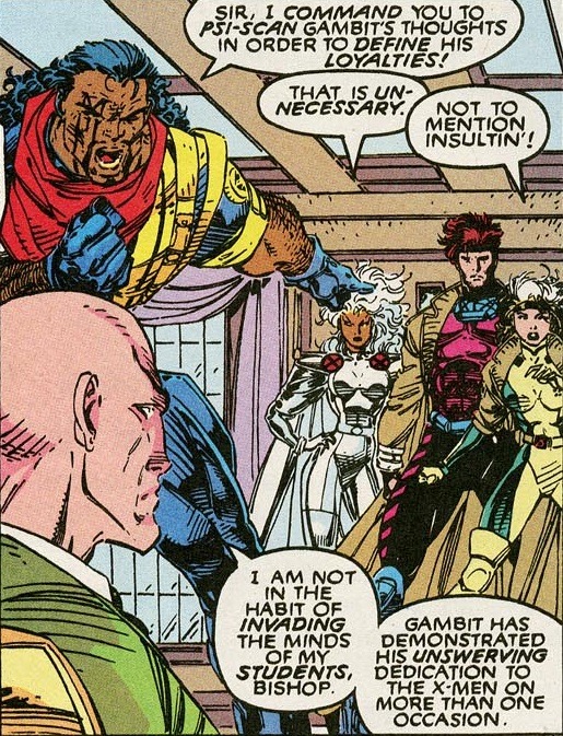 the greatest thing about this is that it’s later revealed that xavier can’t read gambit’s mind, so he’s literally just making this up to cover his ass.