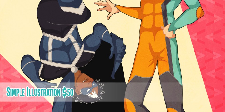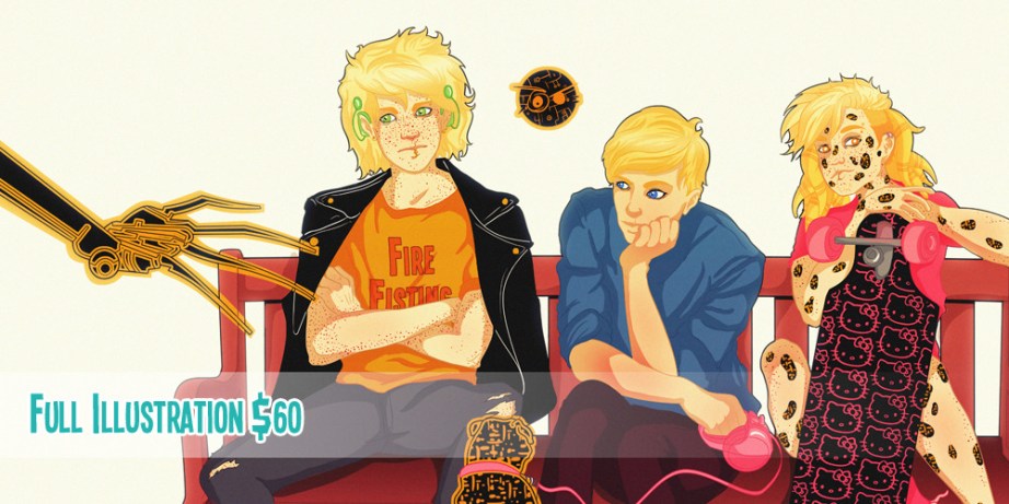 Which includes complicated background//composition ect.- Additional Character: $12 each. (does not include the simple head offer)