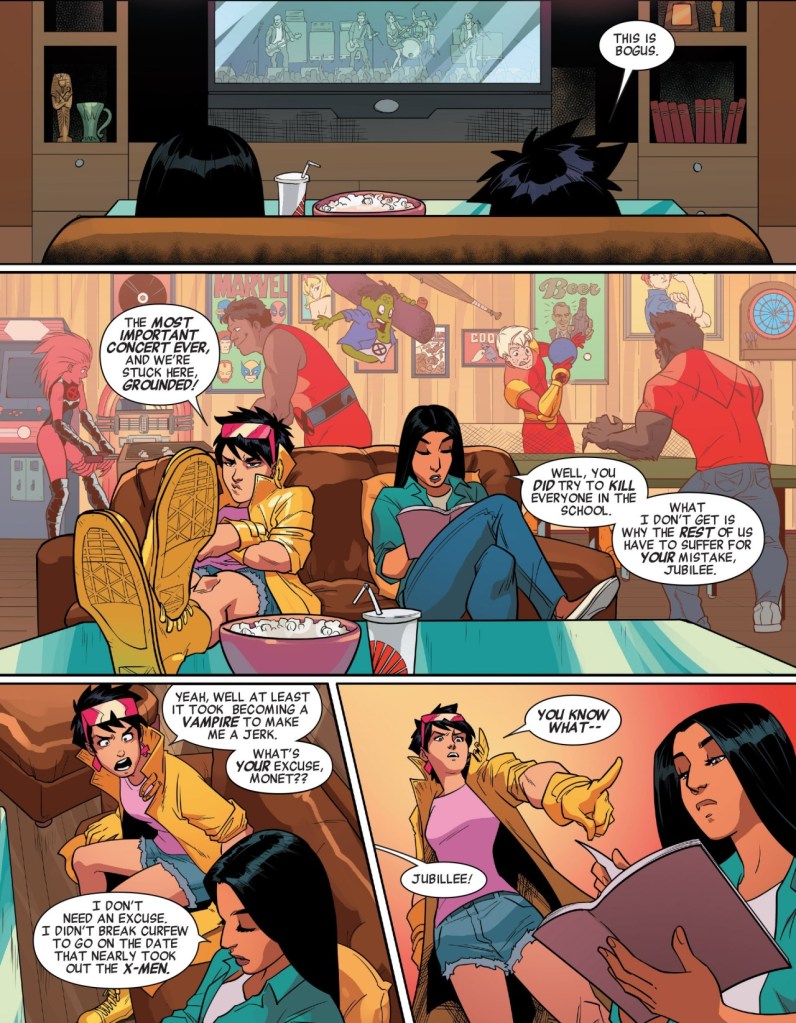 I just love that rivalry moment between Jubilee and Monet. And Jubilee’s face in the last panel is hilarious!