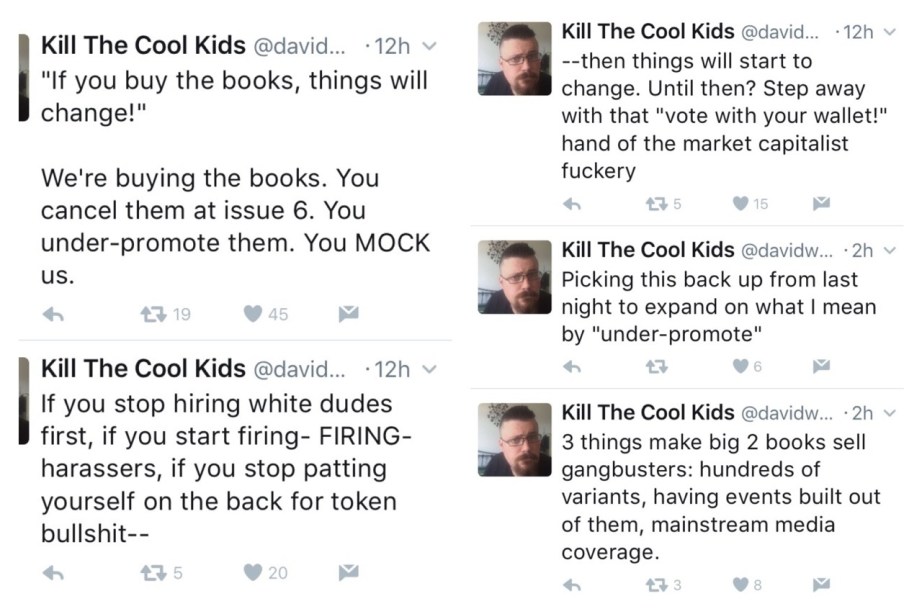 Cape comics as an industry is, frankly, an object lesson in living long enough to see yourself become the villain. I mean look at what these characters were originally about. Captain America, the crusader against racist ideology and supremacist ideas. Superman, the vaguely anti-capitalist strongman who destroyed the cars of petty bureaucrats in retaliation for unjust laws. Wonder Woman, the aggressively queer and feminist propagandist who flat out told little girls not to let men control them in any way.