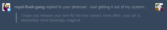 I’m also on dA where you can dig through, like, 50+ drawings of them that I did over the course of several years: http://blithefool.deviantart.com/