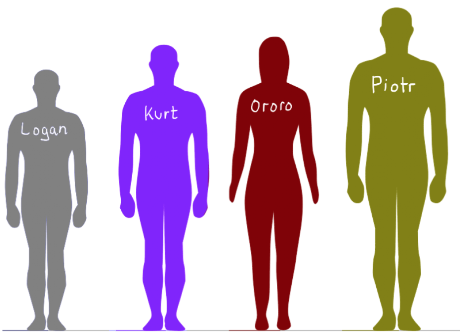 -Logan is way shorter than Ororo. KURT IS SHORTER THAN ORORO