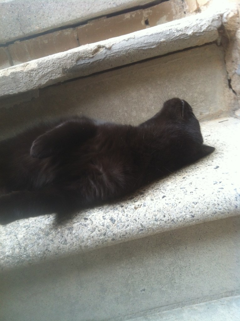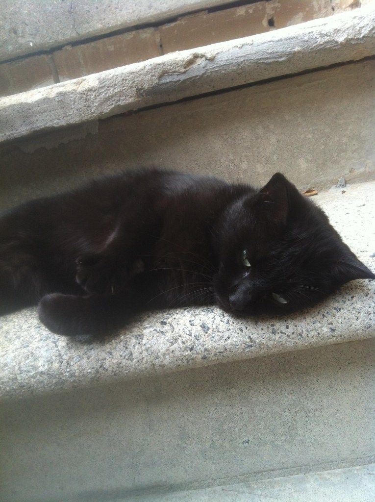 as she’s a black cat and they’re my fave, i’d take her in but i am literally homeless and currently can’t even care for the cats i already have; they’re living with family until we can get a place of our own.