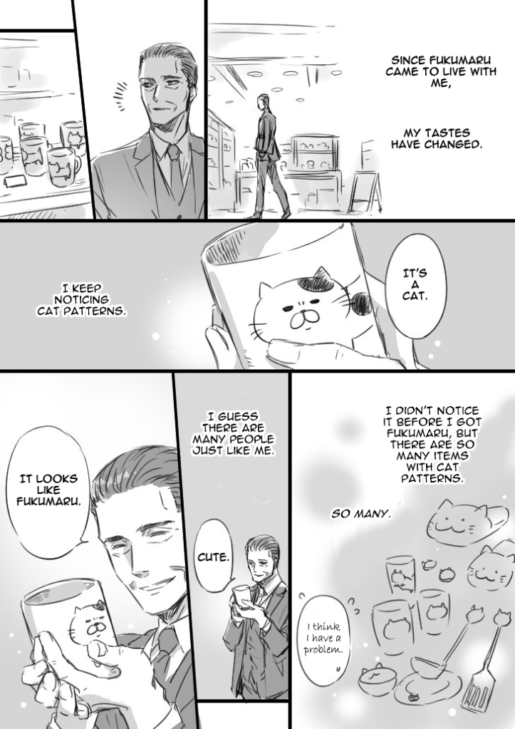 So that feels-laden comic about the “ugly” cat getting adopted by the older gentleman is called Ojisama to Neko. As far as I can tell, Ojisama to Neko is an ongoing online comic that’s mostly posted to the artist’s twitter account, @sakurai_umi_. You can even see the original of the adoption comic.