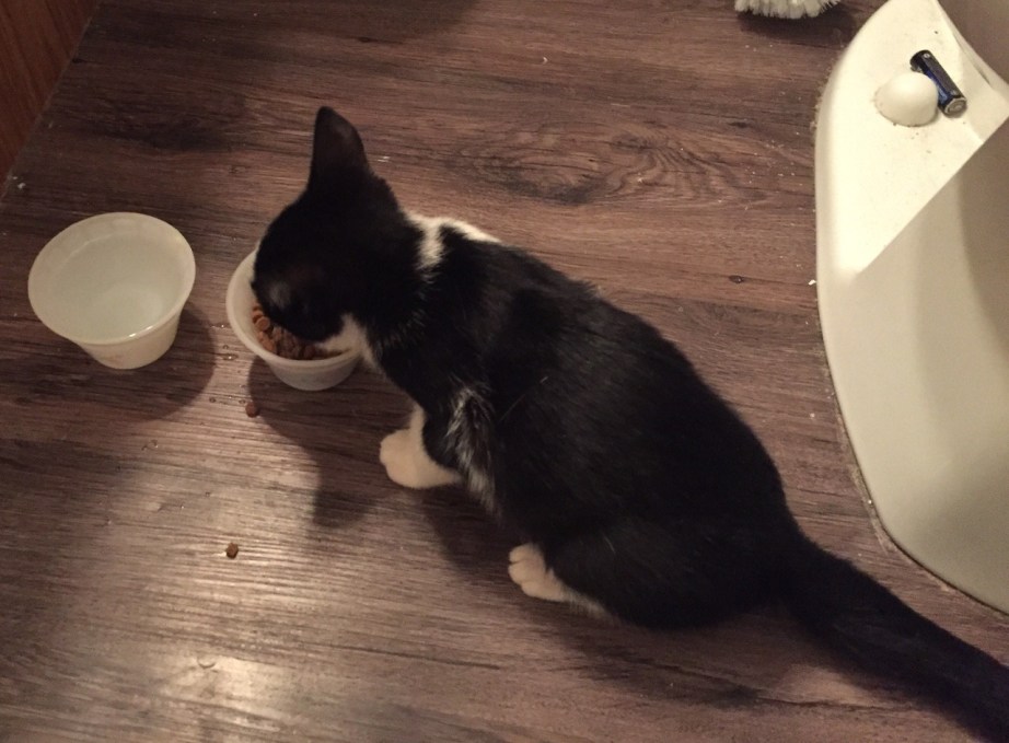 I found this kitten on the street yesterday. It’s about eight weeks old, intelligent, gentle, tolerant of children and other cats, and seems to be in pretty good health. Unfortunately, I’m at my limit for cats as far as my lease and finances are concerned, and I need her to go to a new home within the next couple of days.