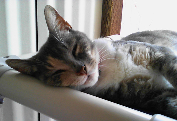 My lovely little calico cat Sugi is missing. She’s round about 7 months old and wee, very friendly and inquisitive. Sometime in the night she managed to escape, and as she’s been a house cat since I got her I’m worried that she won’t be able to find her way back to me as it’s all new and unknown.