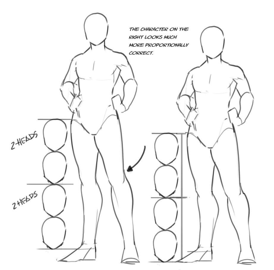 To draw someone shorter, you can sever a head or two. Or add them on to make them taller. Most of that height tends to be in the legs, but there is some variation in torso height. It’s also important to note that head sizes vary as well.