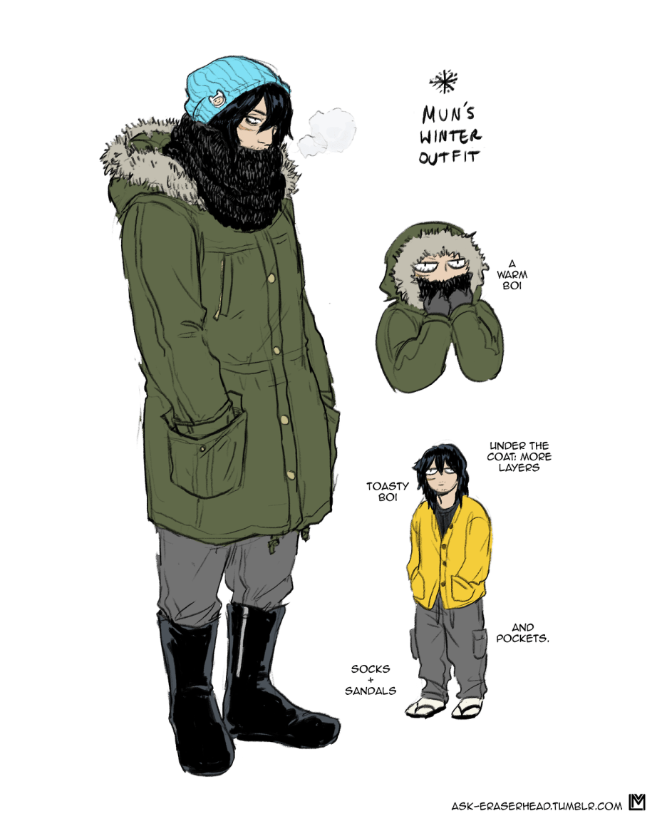 Aizawa: Why do you try to stuff the whole house in your pockets? It’s making this coat unnecessarily heavy. Just bring a bag, it’s more efficient.