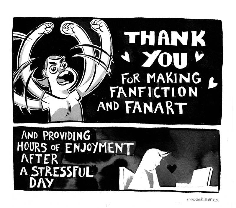 This has evolved to one of fanfiction’s major assets in my eyes. To every author that cares enough about the characters in their stories to examine trauma, but also the slow, tedious processes of healing and recovery: your stories mean so much to me and other persons with mental health problems. Thank you, thank you, thank you.