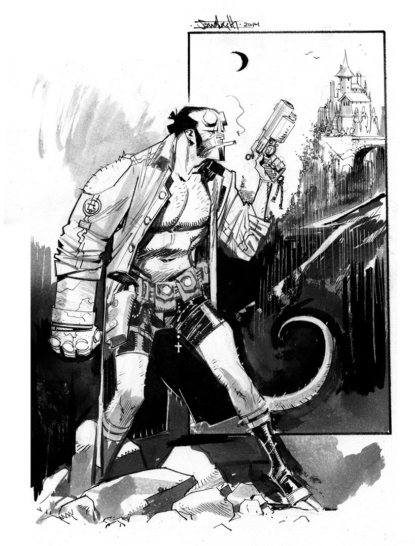 In a plot twist surprising no one, I collect artwork of Hellboy and Nightcrawler being awesome teammates/drinking buddies/half-demon-good-guy-bros. I try to get at least one commission every time I make it to a convention with a half decent artist’s alley. I have too many to share in a single post, so I’ll have to share them one at a time. (I might make one post of all the quick sketchy ones.) To my great shame, I didn’t always get the artist’s name, but I’ll give credit where I can. Starting the collection off with a bang by this great piece by Mark Dos Santos. Fun fact: This had to be mailed to me as he didn’t have time to finish it at the convention, but he threw in a free coloring job. What a cool guy.
