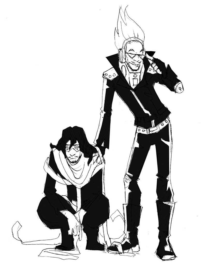 Crappy cellphone pic of a casual punky Hizashi. Idk where the hell you’d wear a half mesh shirt. Club, I guess?