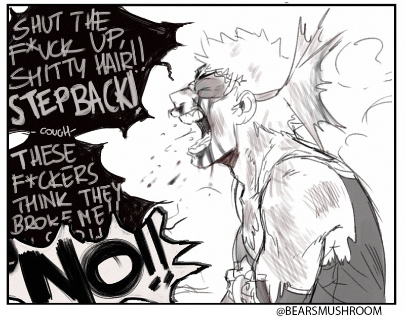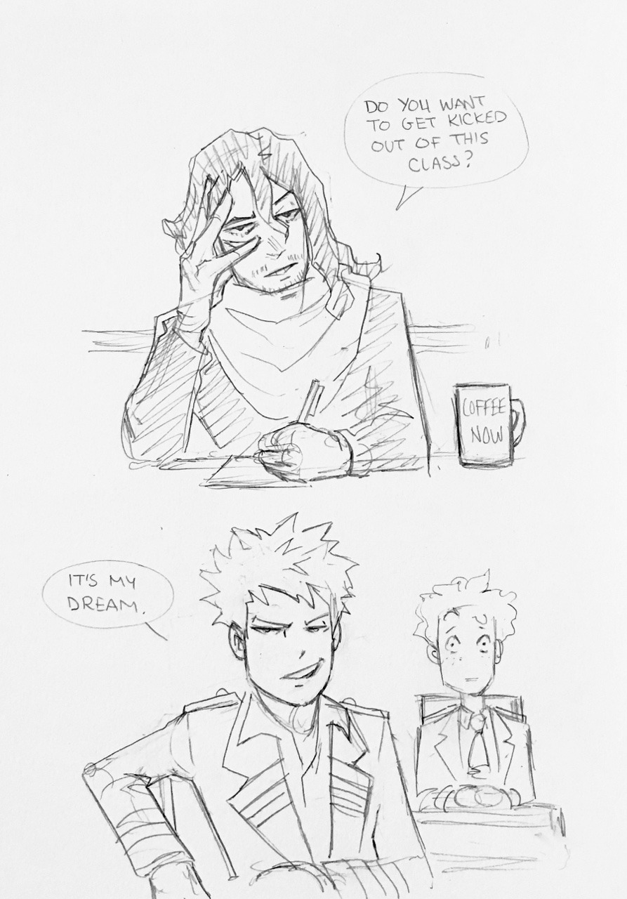 I feel like the next panel is Kacchan being thrown in the hallway by Aizawa’s giant murder scarf.