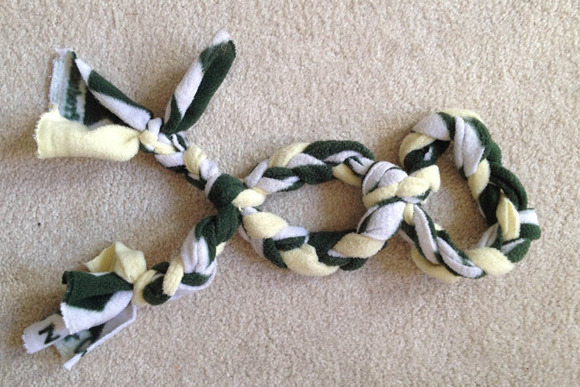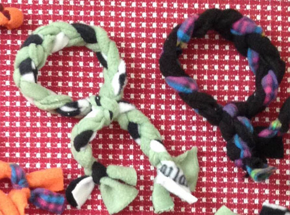 have a dog that loves to chew, tug, toss and prance? need a cheap, machine-washable, quick-drying toy? enjoy buying handmade items made from recycled and remnant fleece?