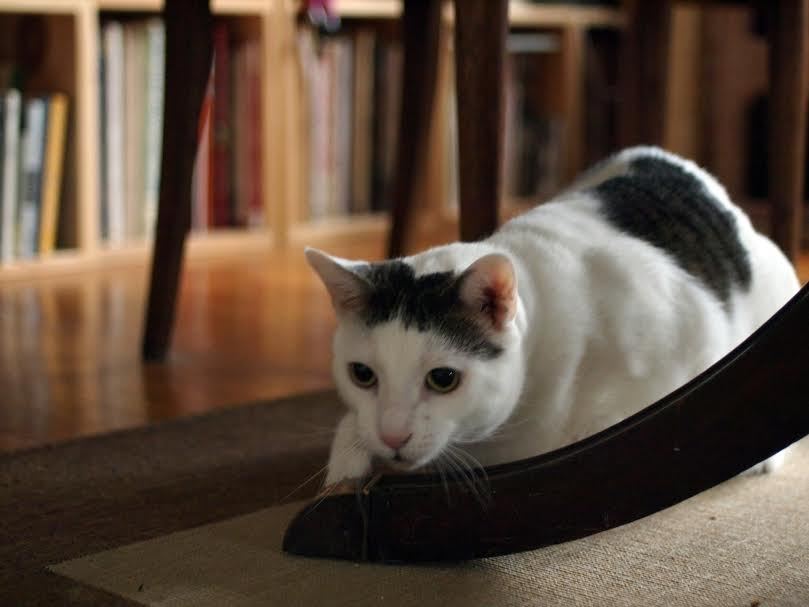 My husband took this very flattering photo of our cat today. The red thing by his bum is a felt catnip tomato. He’s eviscerated 3 of them over the 2 years we’ve had him. I just bought him a 4th.