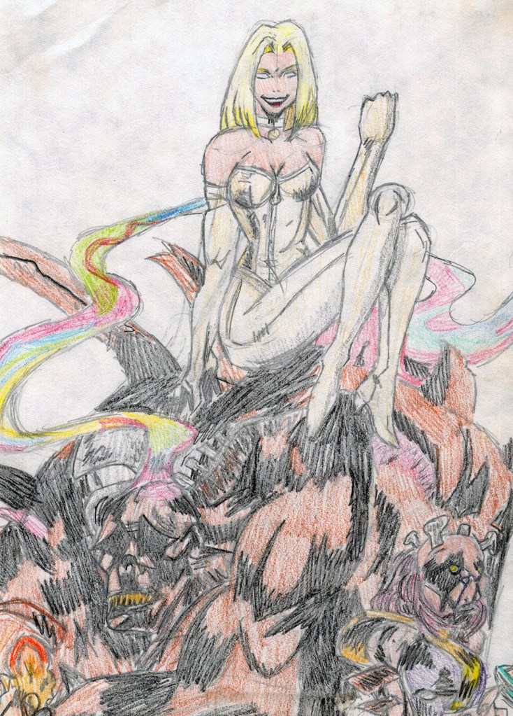 I was talking to gaupet about how my interests haven’t really changed in, like, 20 years. I mentioned I had sketch pads full of Gen X art I did when I was 12-13. There’s way more than this but I didn’t have the energy to search through hundreds of sketch pads last night. So here’s some kid!Blithe art from ‘94-’95. Exciting.