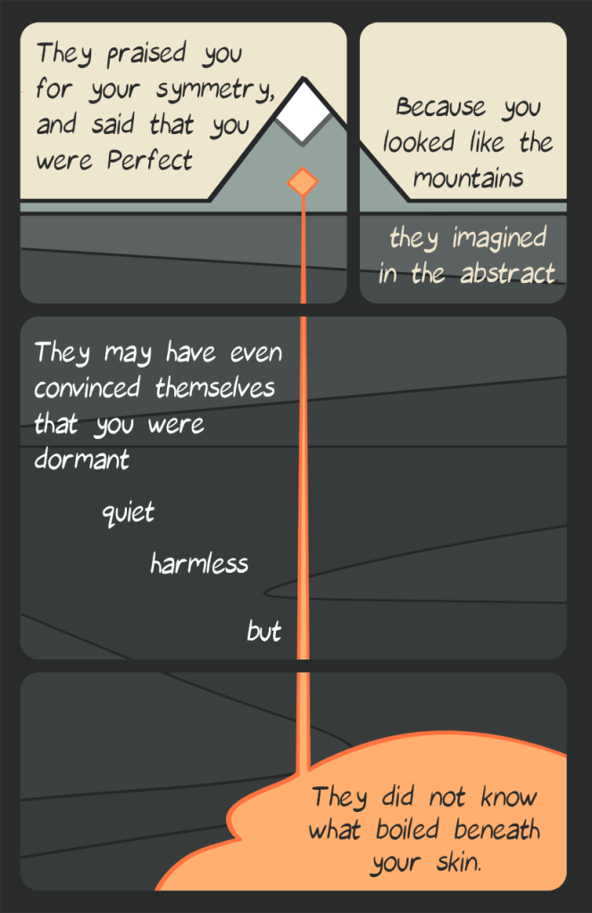 Vision has no hair anywhere on his body–no armpit hair, no eyebrows, no eyelashes. No fingernails. His skin tastes like metal. Sometimes, he forgets to breathe for minutes or hours at a time.