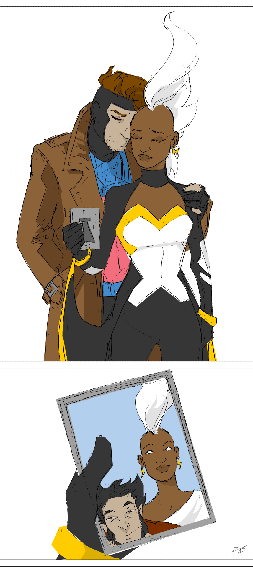 Kurt and Ororo in their, uh, casual Friday outfits, I guess? I put Kurt in flip flops as I imagine it’s the only sort of shoes he can comfortably wear.
