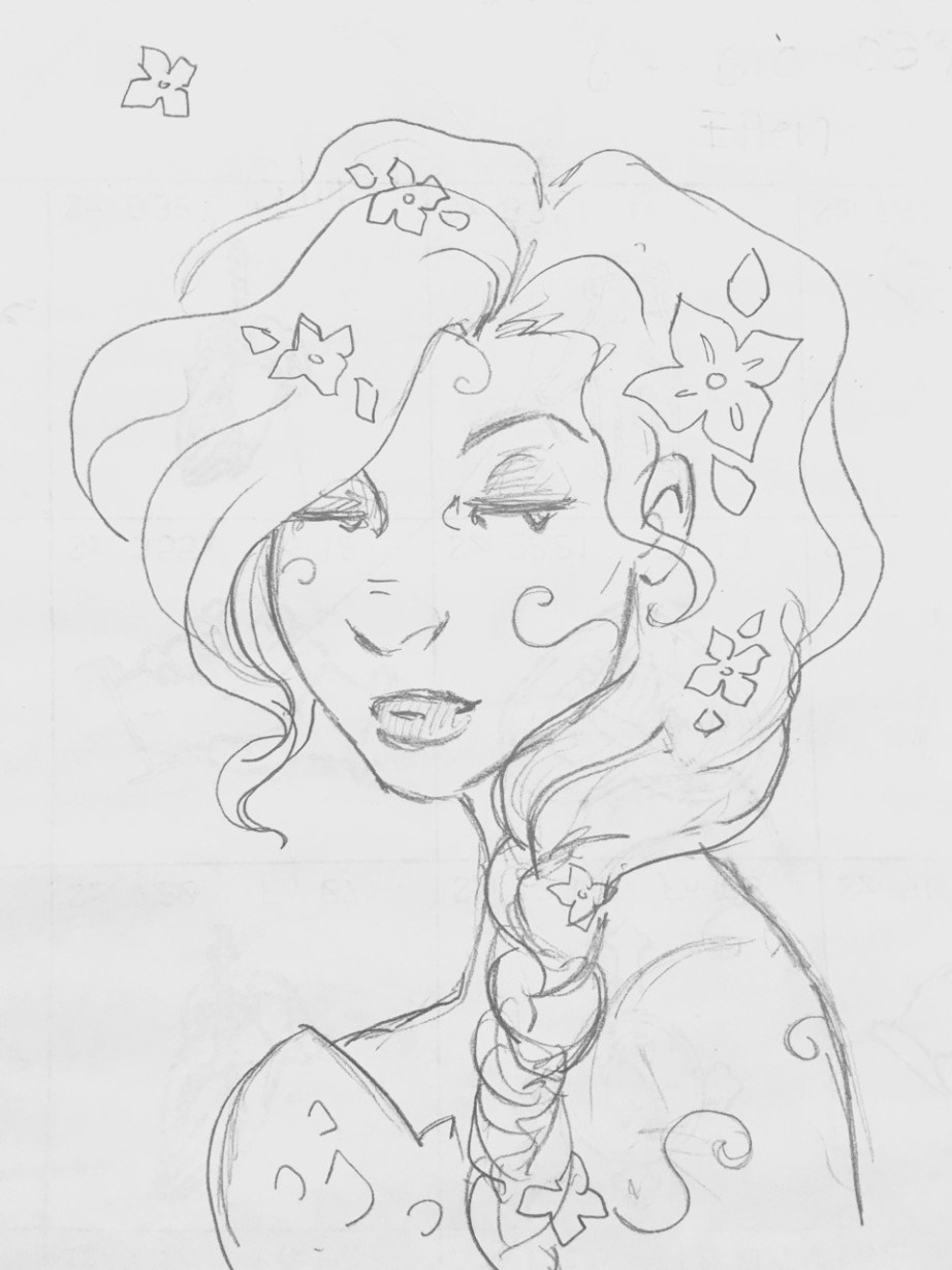 Up close, her hair seems to move on its own. Its strands are thicker than typical hair and its color off. Her lips are too bright but you can tell it’s not lipstick. Her eyelashes remind you a Venus Fly Trap’s toothy maw. Her pupils are horizontal slits, like a goat’s.