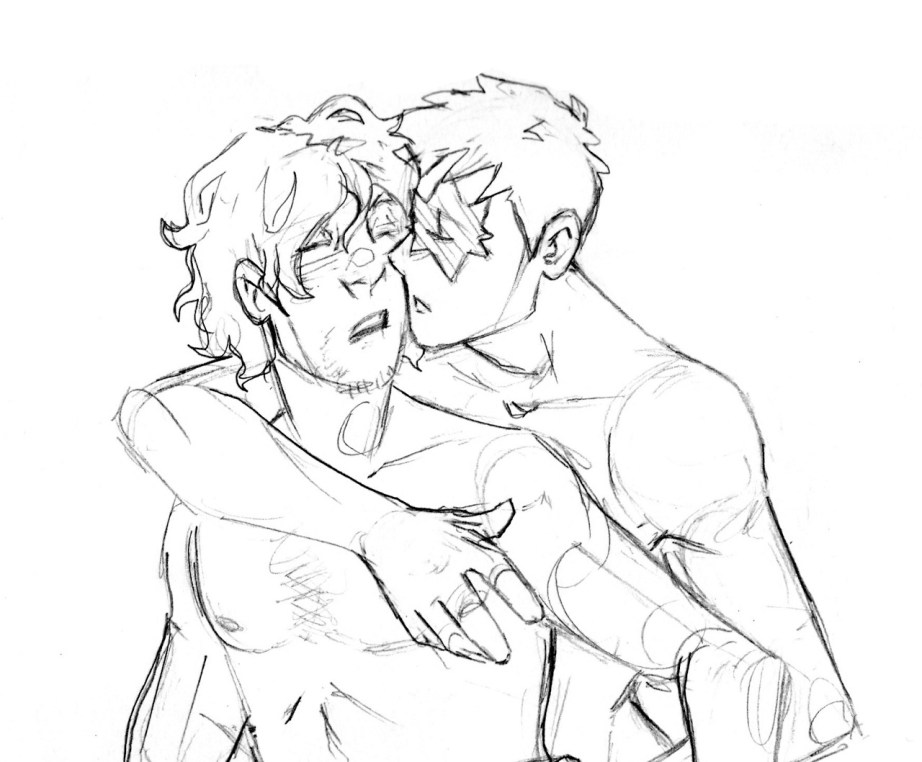 So much more carefully than his strength would imply, ‘Star divests him of the jacket, and lays a big hand on Ric’s shoulder, practiced fingers looking for deformation. “I don’t think it’s out of the socket,” he says, sliding his hands up the back of Rictor’s shirt. “Did you do this in battle?”