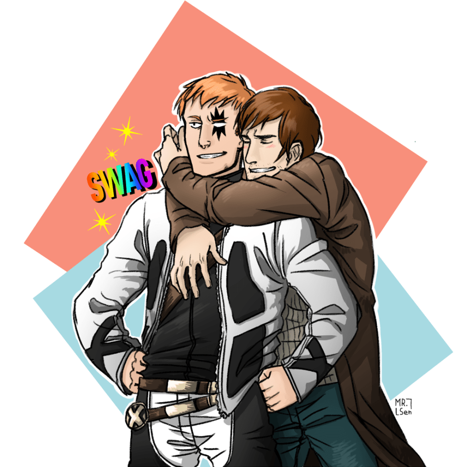 ‘Star very seriously kisses the spot where it hurts (He always knows exactly where it hurts, Ric thinks, and that is not at all fair) “Next time, perhaps it will not hurt so bad if you remember to get me a shake, too.” He whispers against the juncture of Rich’s shoulder and neck, and Ric can feel the curve of his lips and the sharp edge of his teeth.