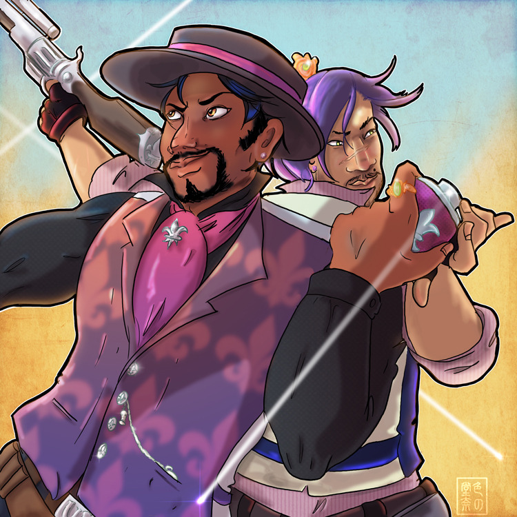 + 10 per elaborate/highly detailed props or complex character armour. Simple swords and/or guns are free 😉 No charge for simple gradation backgrounds on request.