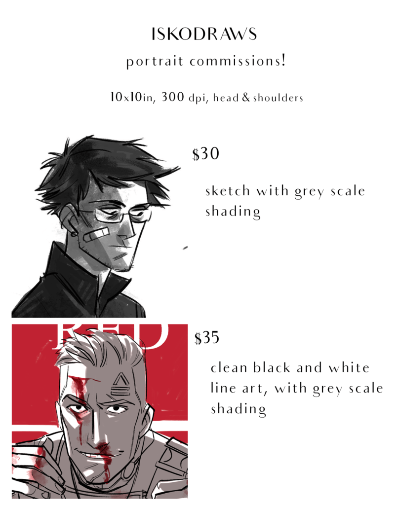 I’m in the middle of updating all my commission info to offer more options all across the board! right now I have PORTRAIT commissions for private/personal use available, and later this week I’ll be rolling out some other neat stuff if you’re in the market for something else!