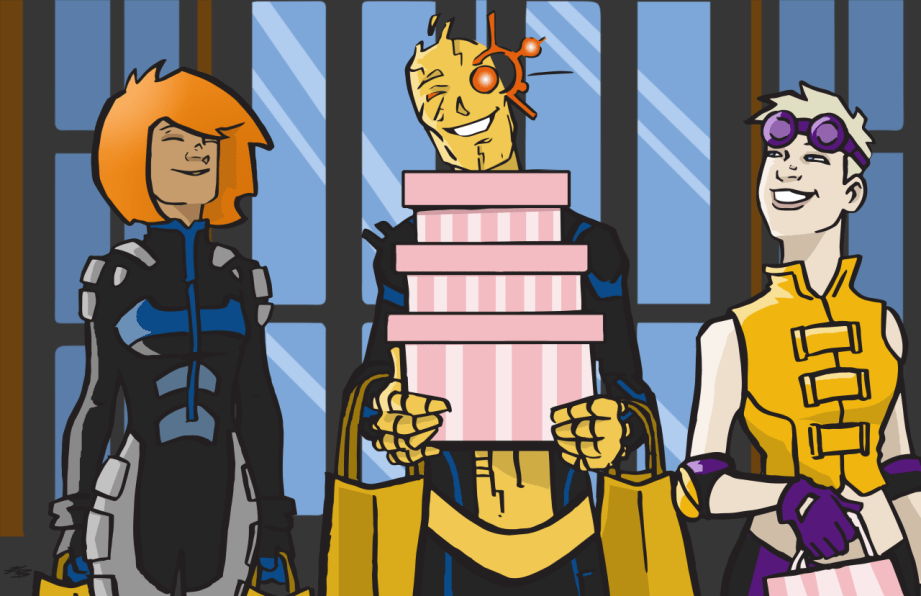 I will go to my grave assuming that the final scene of everyone watching Warlock and Danger doing… whatever it was they were doing, was followed by Warlock emerging briefly to ask Doug if he’d like to join in… and Doug just shrugging, smiling and agreeing… at which point everyone else would just get the hell out of there, because Warlock and Danger making techno-whoopie is one thing (they’re not human and shapeshifters to boot_, but throw in a human too, and people’s minds start thinking about things like “Positions” and “who does what?” and you don’t necessarily want to think about such things with your team-mates!